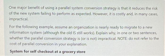 Conversion from one information system IS to. A is tested by an outsourced company. A typical end user concern about a new system is where the data will be stored. Is tested by an outsourced company. A is tested by an outsourced company. Parallel adoption is a method for transferring between a previous system to a target system in an organization. In a parallel conversion strategy the new system. The process requires careful planning and control and a significant investment in labor hours. A is tested by an outsourced company.