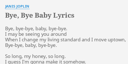 Igual primeiro verso So long my honey so long. Se videon för Bye Bye Baby från Janis Joplins Greatest Hits gratis och se konst låttexter och liknande artister. Bye bye bye baby bye bye I maybe seein you around When I change my livin standard and I move up town Bye bye baby bye bye.
