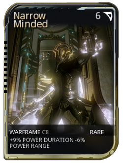Narrow Minded increases Ability Duration while reducing Ability Range of Warframe abilities. One of the best ways of acquiring the corrupted mods is to do vault runs on the Orokin Derelict tileset which can mostly be found on Deimos. I have no idea how the drop rates are at the present so it might just be a rare reward.