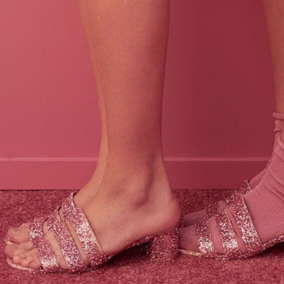 Fast delivery full service customer support. Fits true to size. For Love and Lemons x Marais Jane Mule NIB For Love and Lemons x Marais Jane Mule Size 8 but better suited for a 75 or 7 because these run small Inspired by sugary shades of pink the Jane Mule offers one-of-a-kind silhouette that brings life to your look with sprinkled glitter hand placed details soft leather straps comfortable cushioning and a flirty heel.