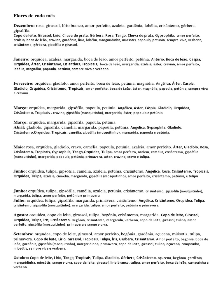 Al igual que a cada mes le corresponde una determinada piedra preciosa tambi n las flores se asocian a los diferentes meses del a o confiri ndoles su particular significado. A rosa está disponível em várias cores e cada cor tem um significado simbólico. Veja quais são as flores que você encontra com mais facilidade de acordo com a estação do ano. Aproveite Para Comprar Agora. Início Casamentos As flores de cada mês. Sabemos que cada espécie de planta possui o seu ciclo de vida e tem um determinado mês ou estação do ano onde ela brota mais. O pau-Brasil era uma das espécies de planta mais abundantes no território brasileiro quando os portugueses chegaram aqui. Íris Brássicas Helleborus Tulipas Dendróbios e Jacintos. Você tenta seguir a lógica em vez da emoção.